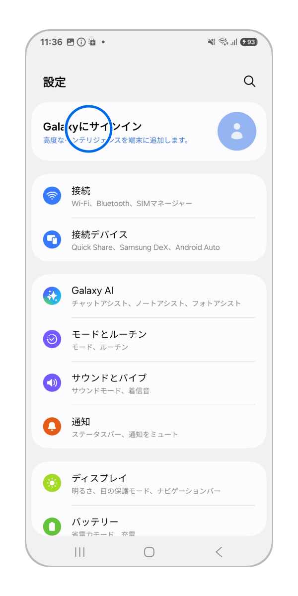 (Galaxy) Samsungアカウントを端末に追加(サインイン)する方法を教えてください。