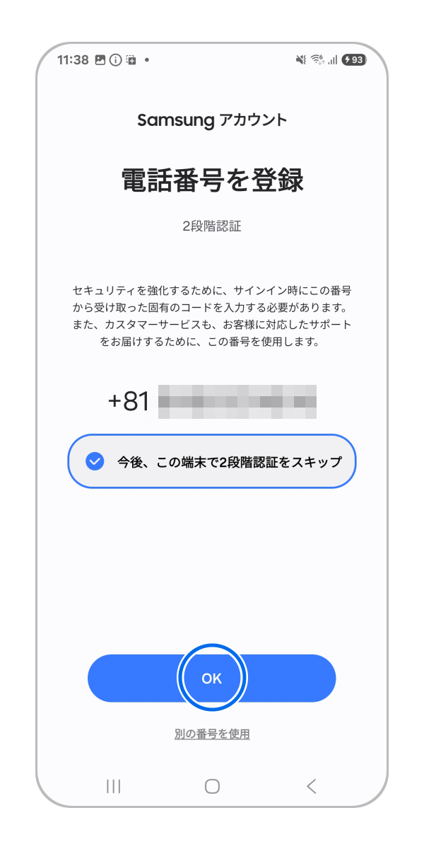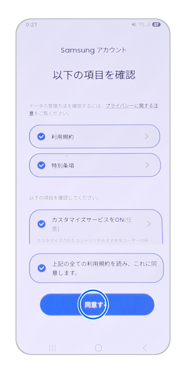 Samsungアカウントを新規作成するには こちらのページ をご参照ください。