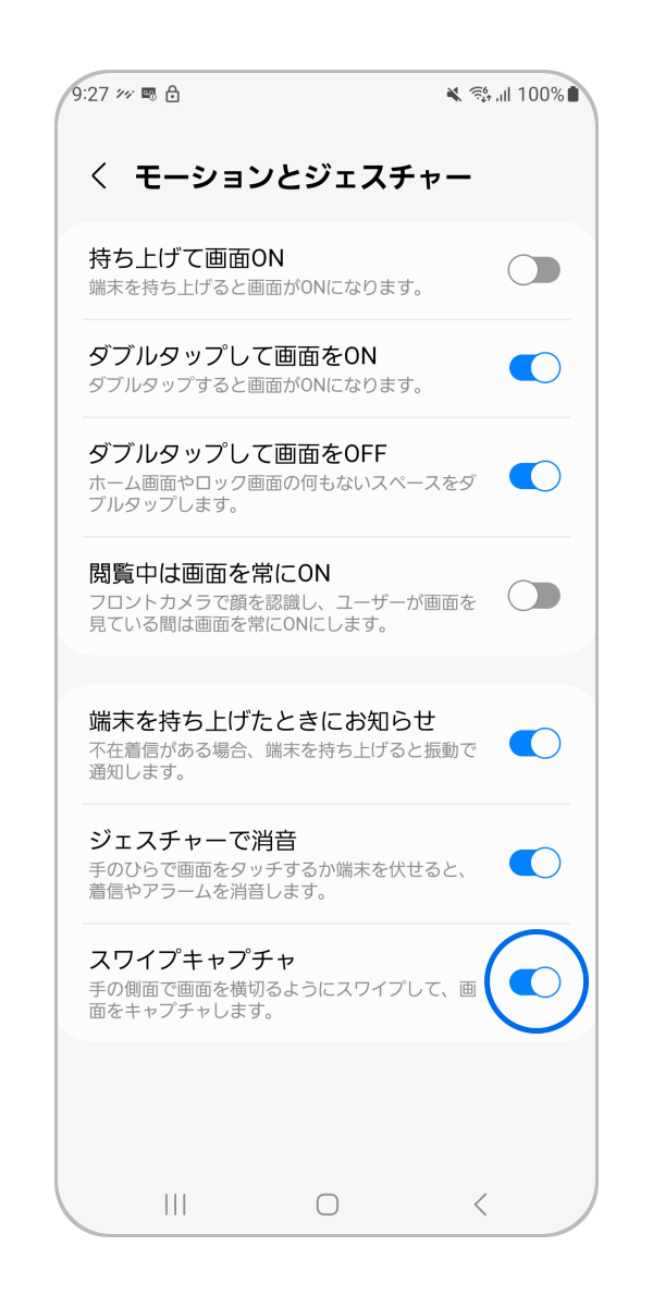 A20/A21/A22 5G/A23 5G/A25 5G/A32 5G/M23 5G ではスワイプキャプチャは利用できません。