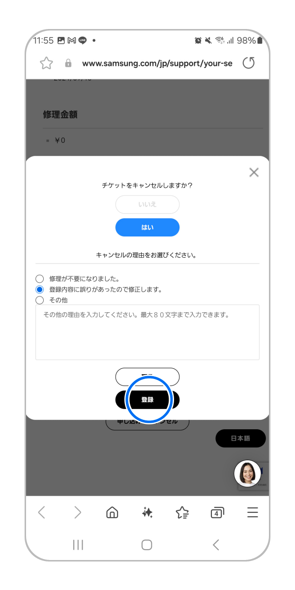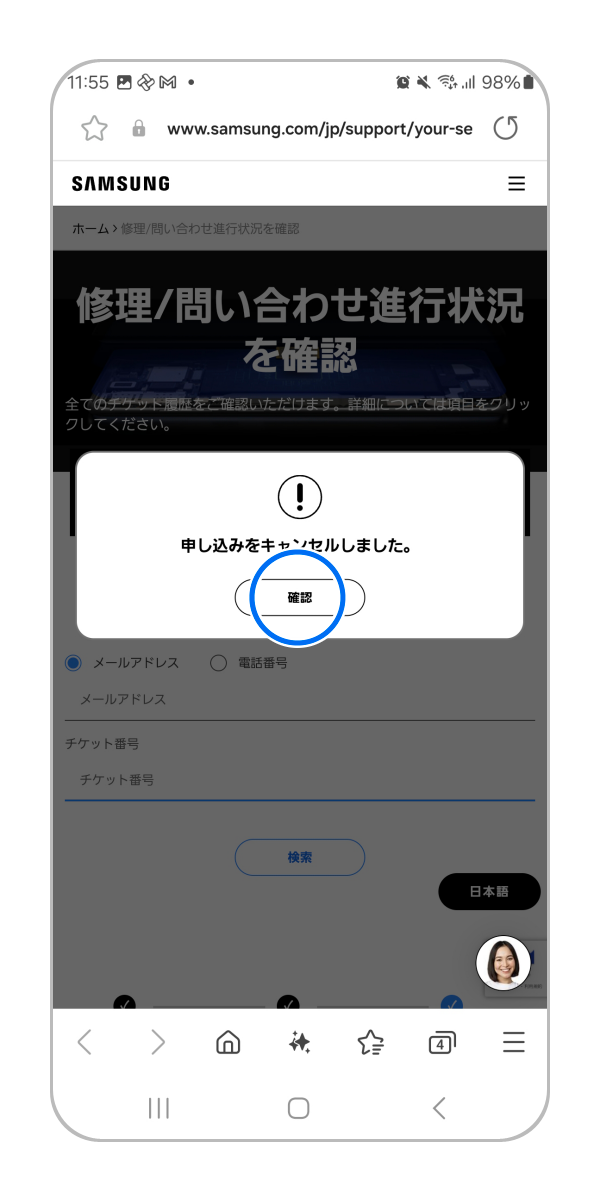 修理に同意をしたが、やはりキャンセルしたいという場合、作業状況により対応が異なるため、Samsungカスタマーサポートセンターまでお問い合わせください。