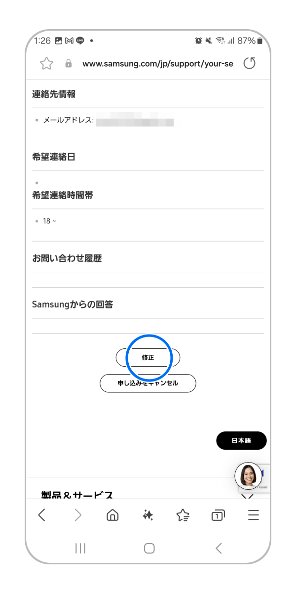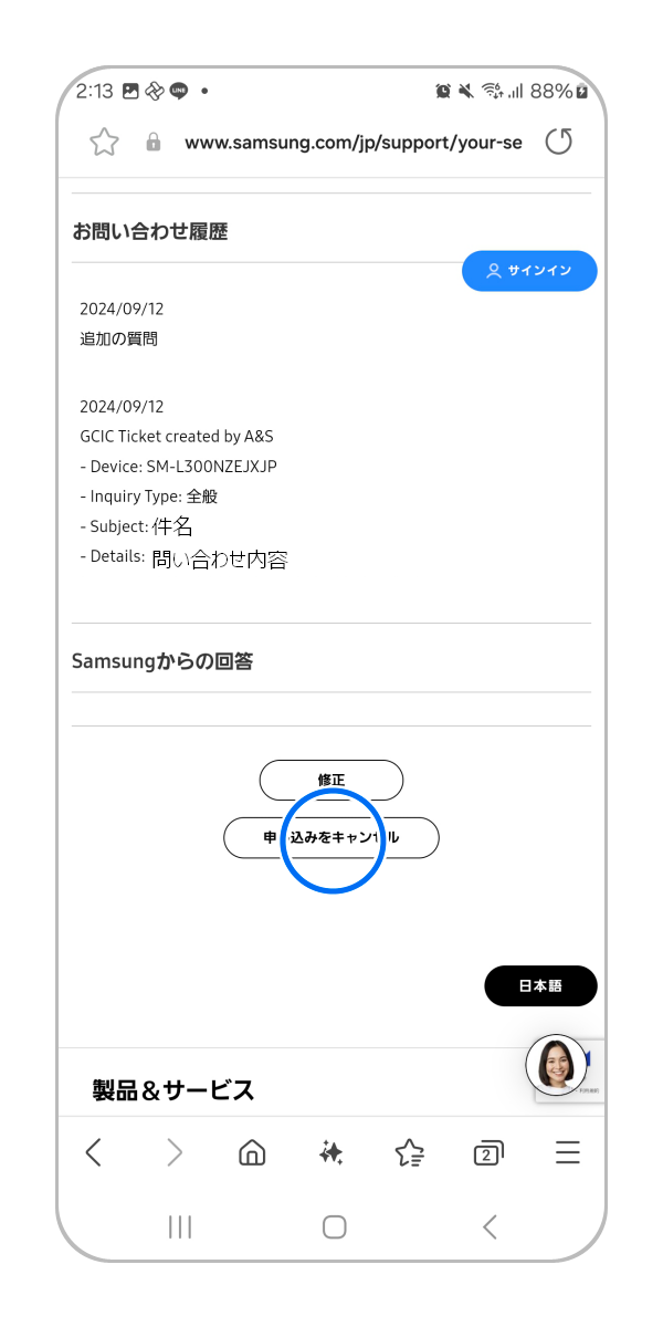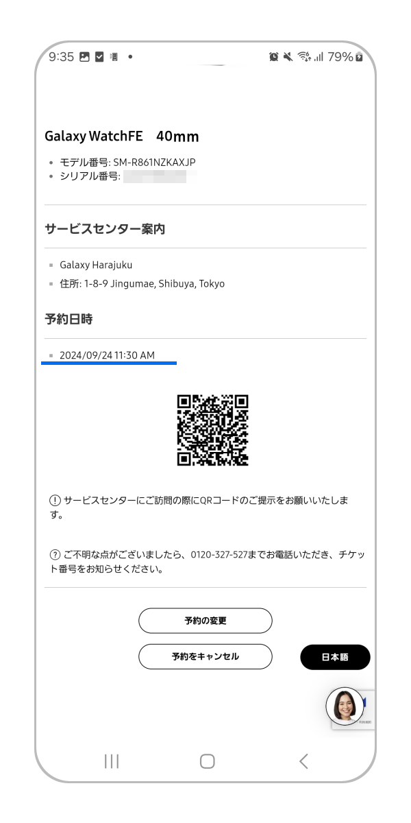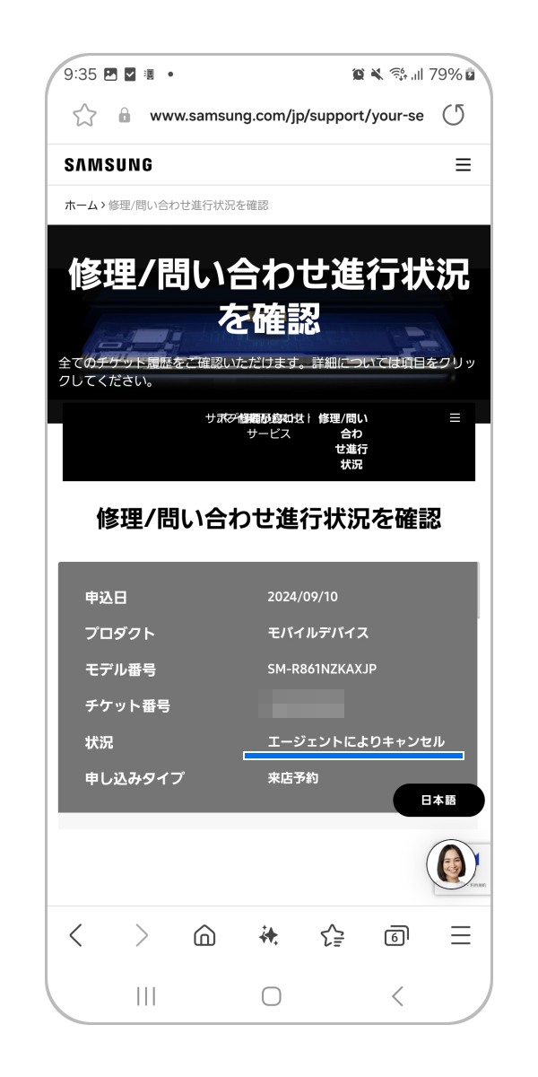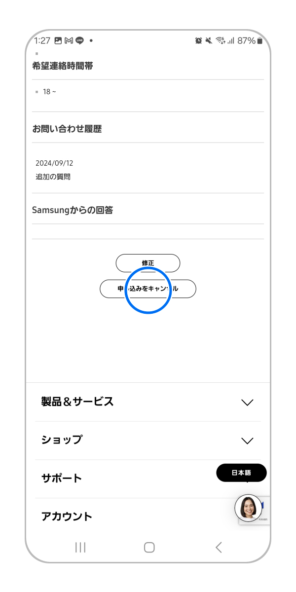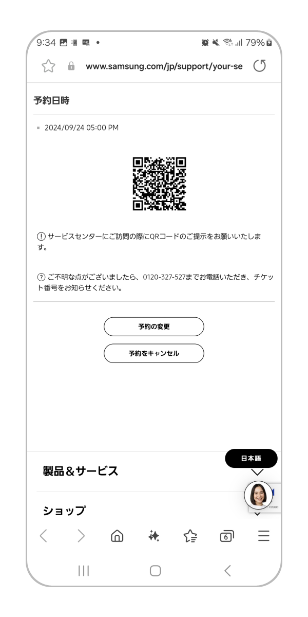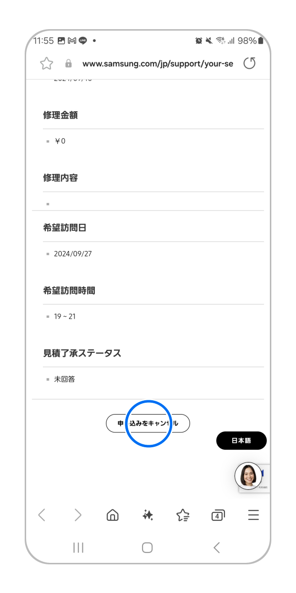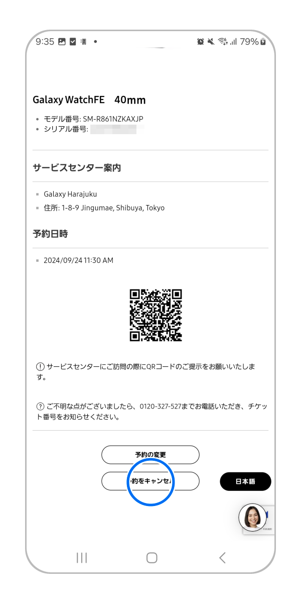 お客様ご自身でサイト上からキャンセル可能です。 ※予約の進行状況によっては、ご自身でキャンセルができない場合がございます。その場合は、Samsungカスタマーサポートセンターへお問合せください。 |
