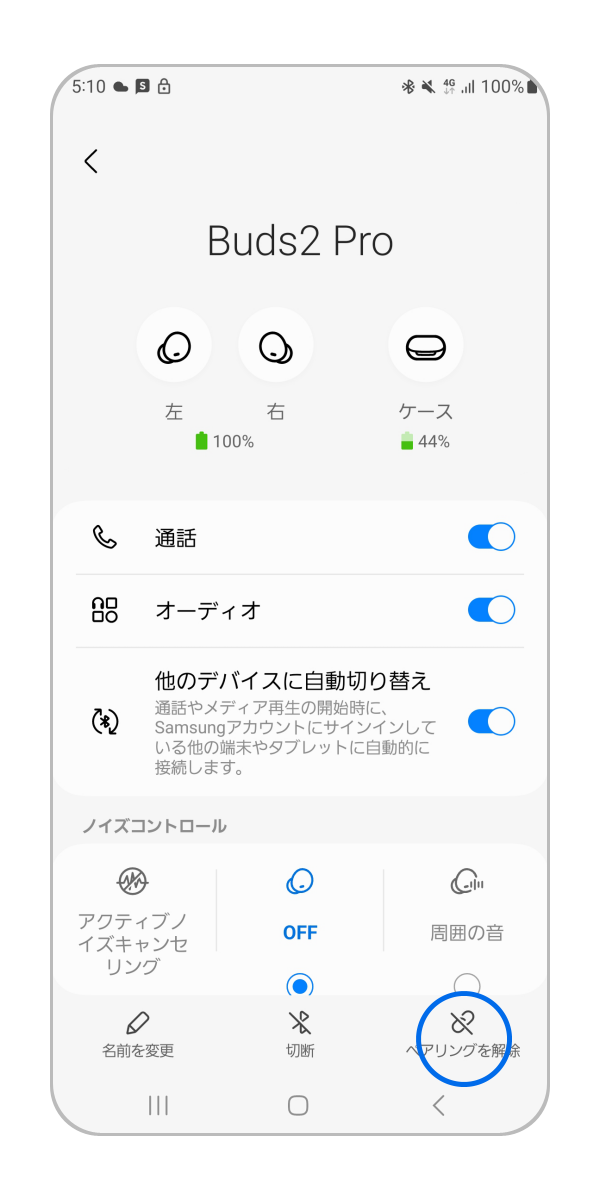 - 画像は Buds Pro を使用していますが、ほかのシリーズでも同様の操作で設定可能です。
