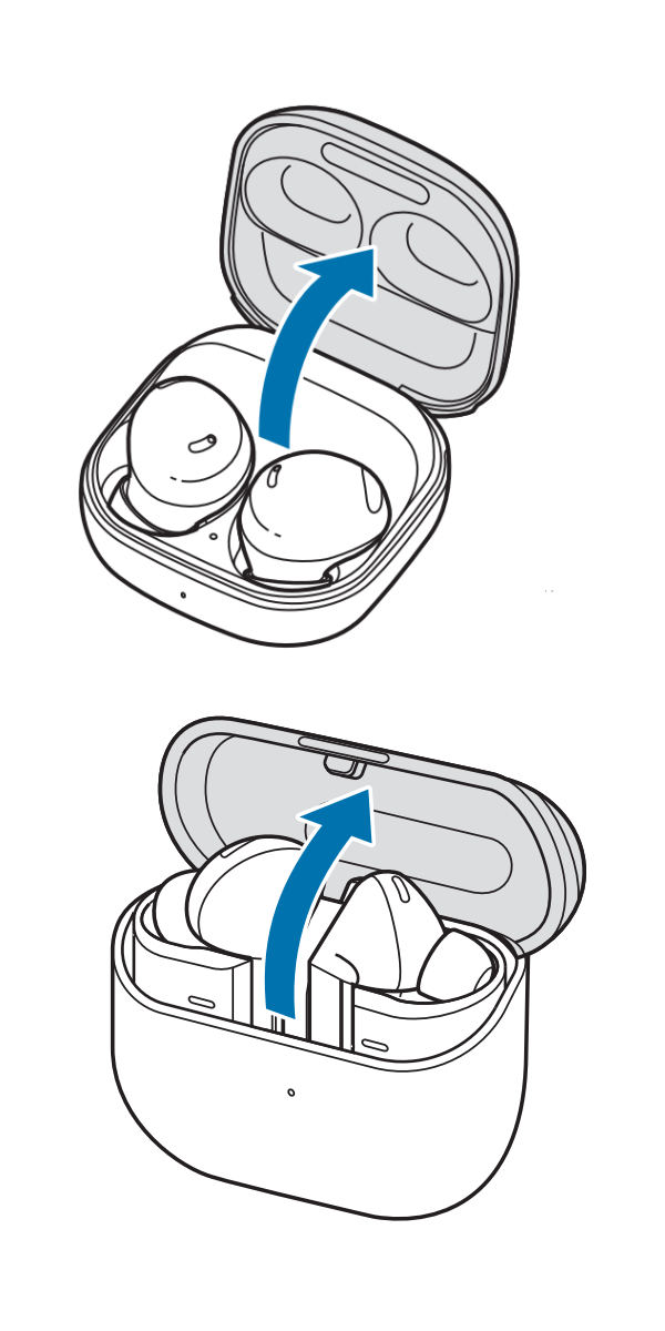ケースを閉じて再び開くと、ペアリングモードが再開されます。