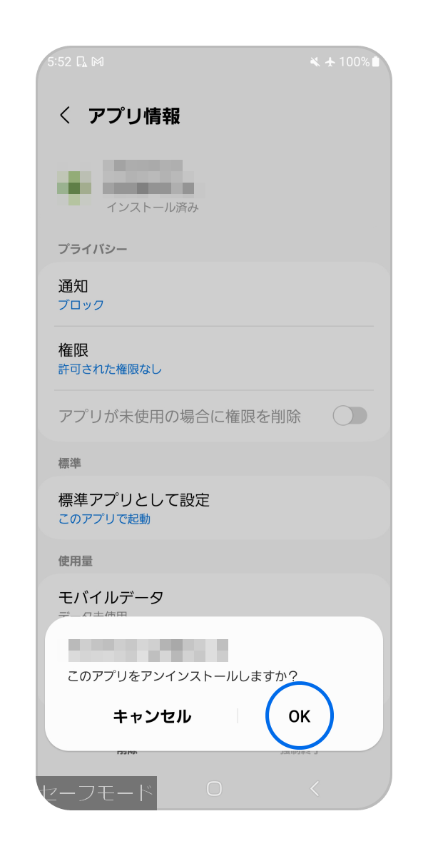 セーフモードを実行すると、アプリの並びや作成したウィジェットなどが消えてしまう可能性があります。詳細は こちらのページ