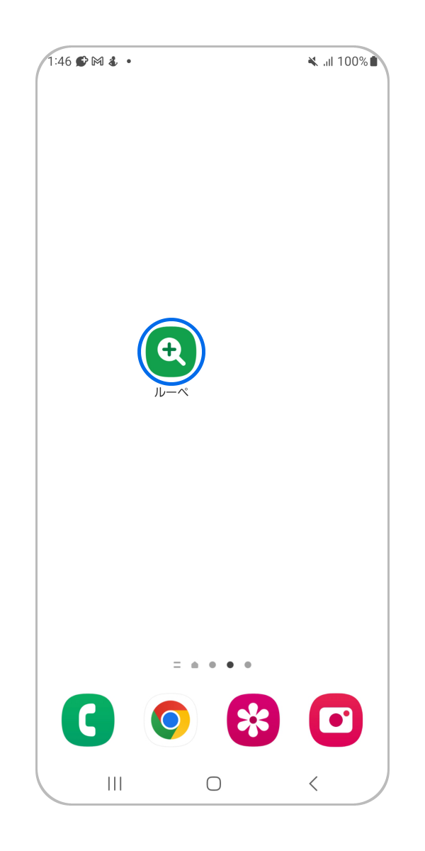 ルーペ機能はウィジェットです。かんたんモードでは初めからホーム画面に追加されていますが、それ以外の場合自分で設定する必要があります。