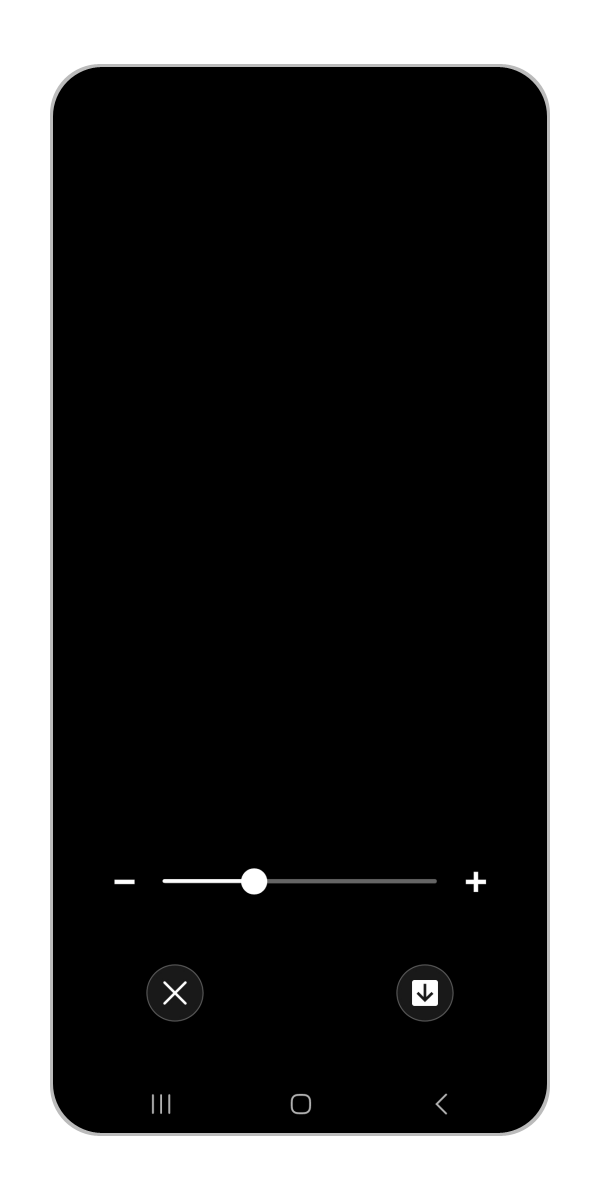 拡大・縮小は色補正アイコンを押してひとつ前の画面に戻るか、音量アップ、ダウンキーで変更することも可能です。