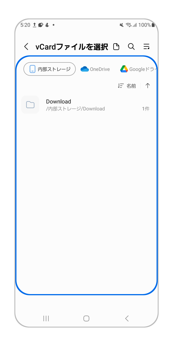 - マイファイル > 内部ストレージ > Download > 連絡先.vcf