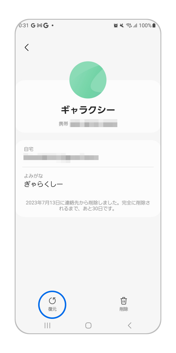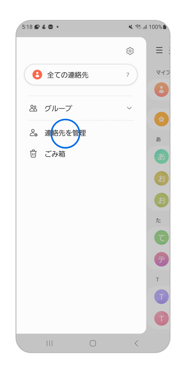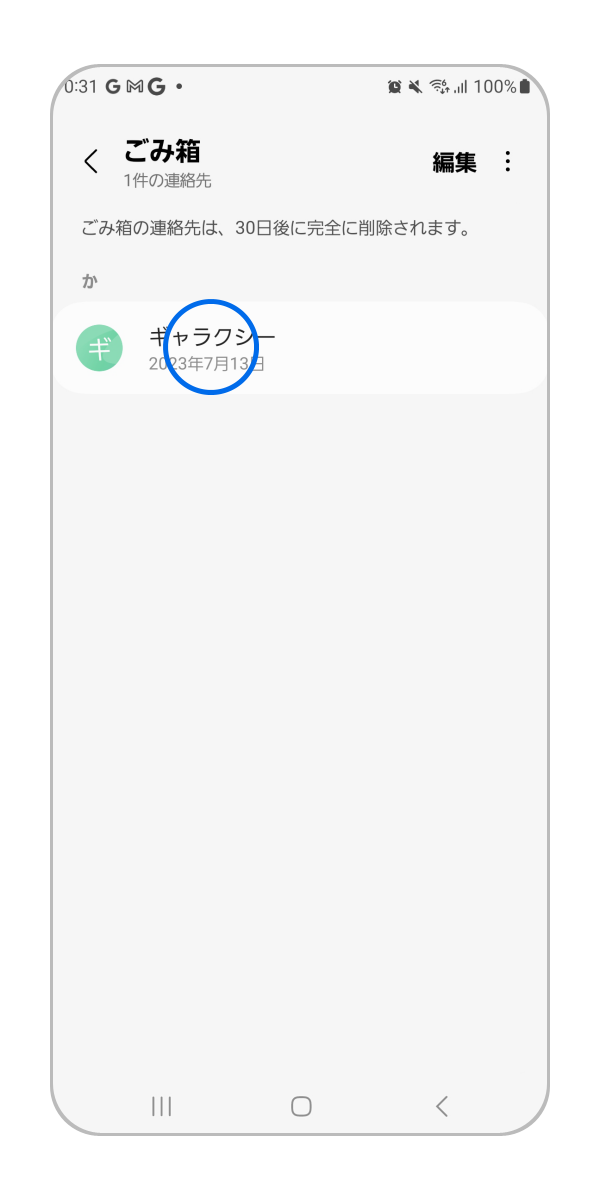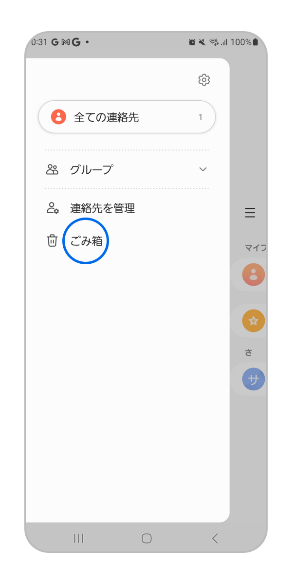 連絡先アプリ >左上横 3 本線 > 設定 > ごみ箱横のスイッチ ON