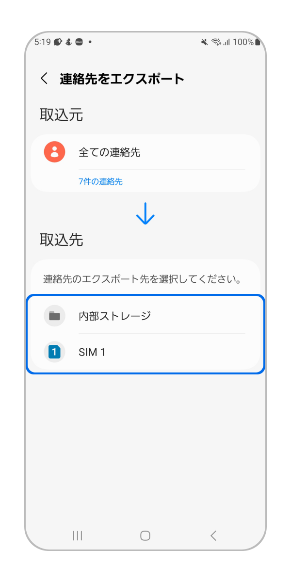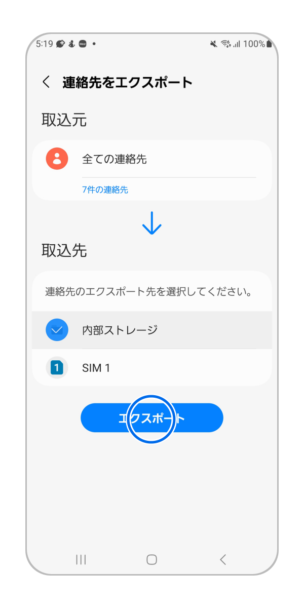- SIM カードを選択した場合のみ、連絡先 1 件ごとエクスポートすることができます。