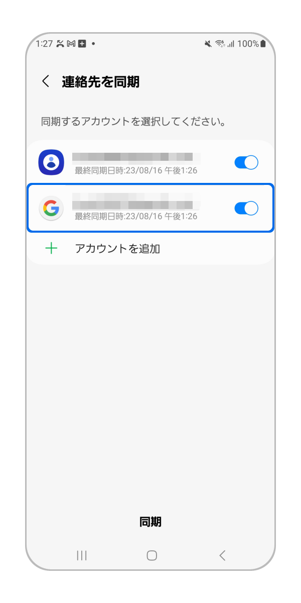 - Googleアカウントの場合、複数のアカウントを追加することも可能です。