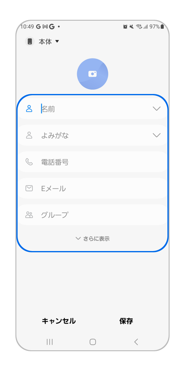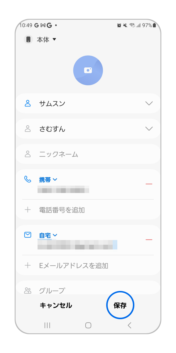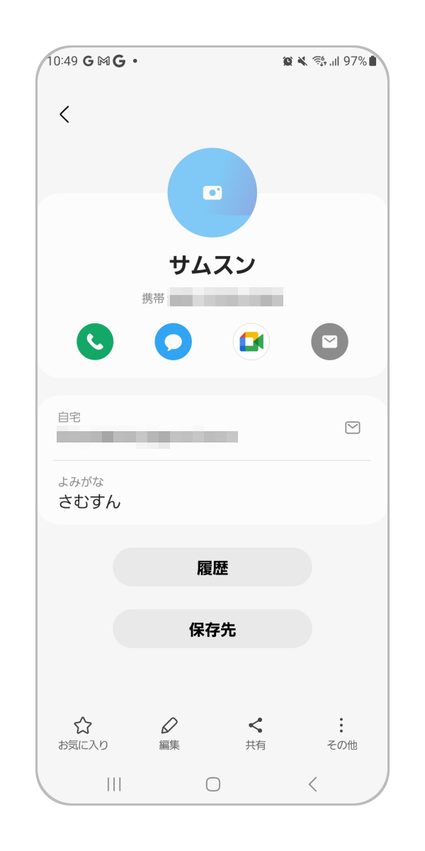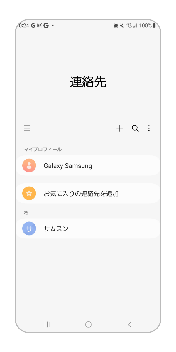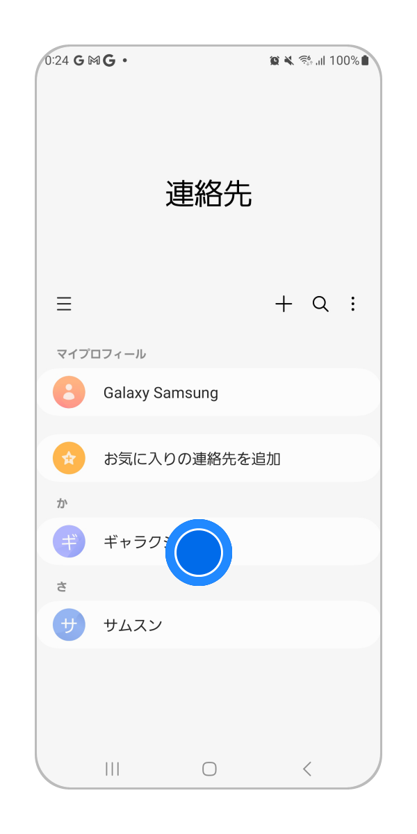 Galaxy の連絡先アプリへの新規登録・編集・削除方法については以下の手順を参照に操作を行ってください。