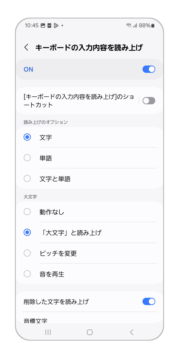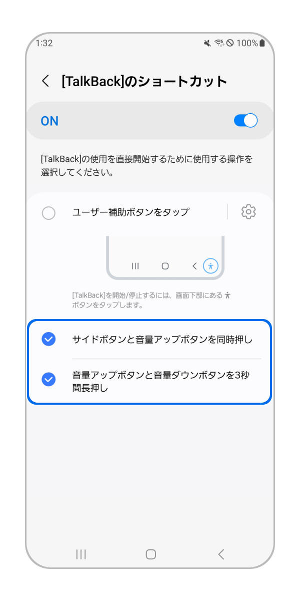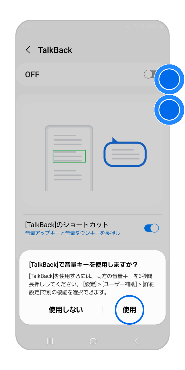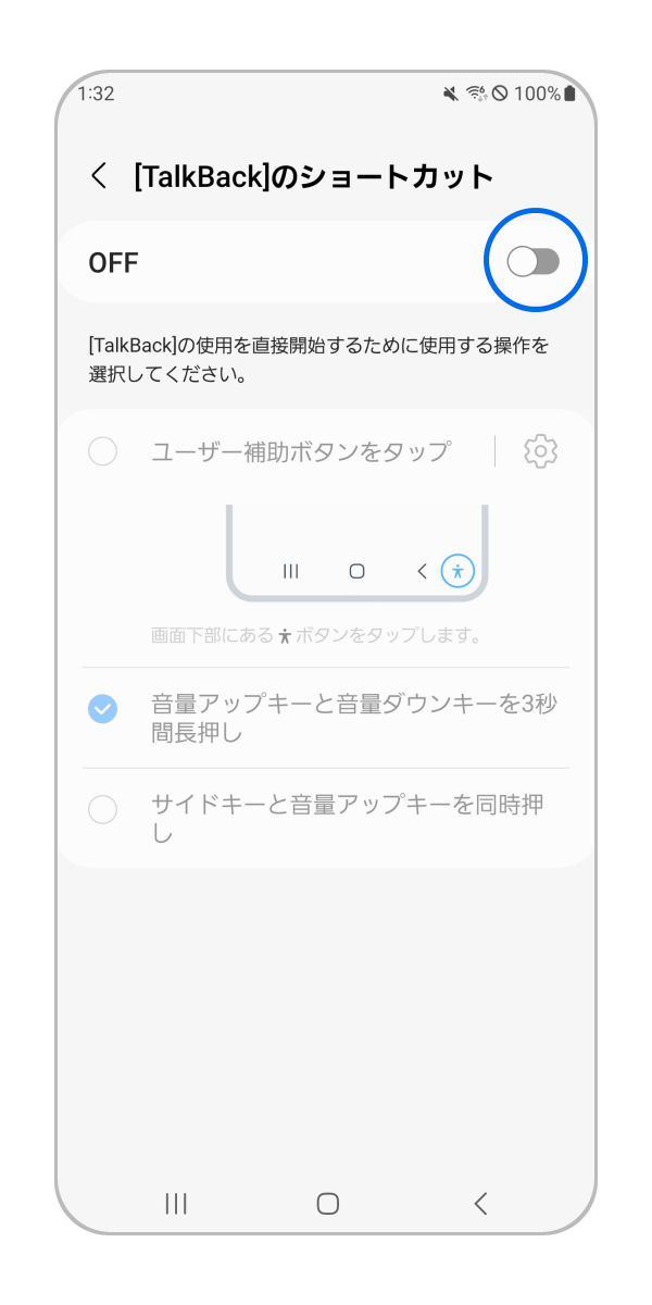 - ただし、この設定を行うことで意図しないタイミングで音量キーに触れてしまい、Tolk Back 機能が有効になる可能性もあります。
