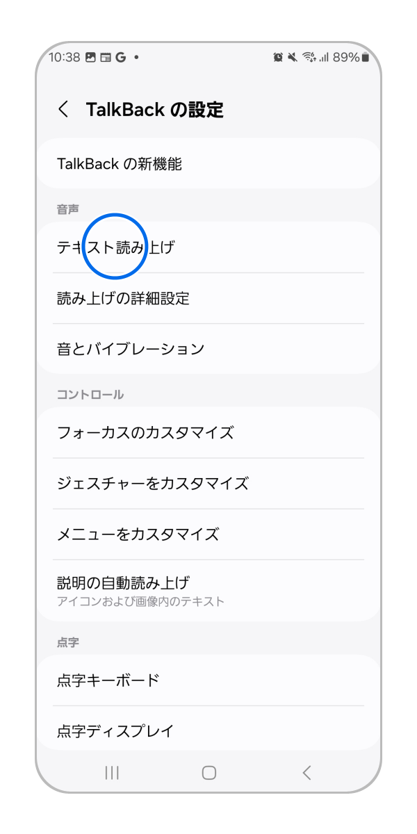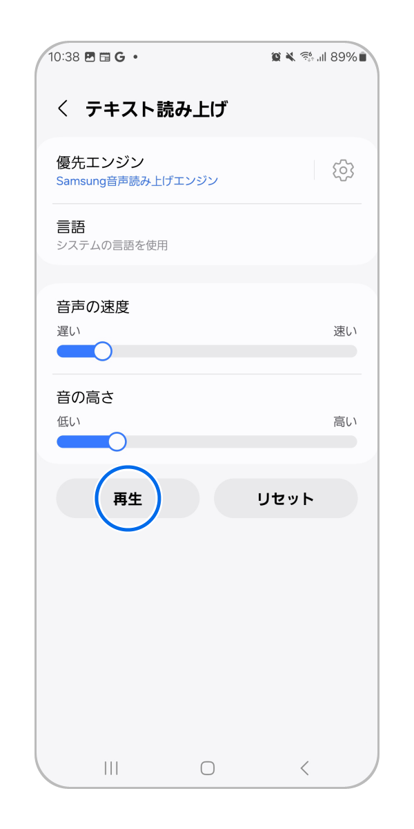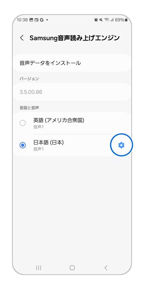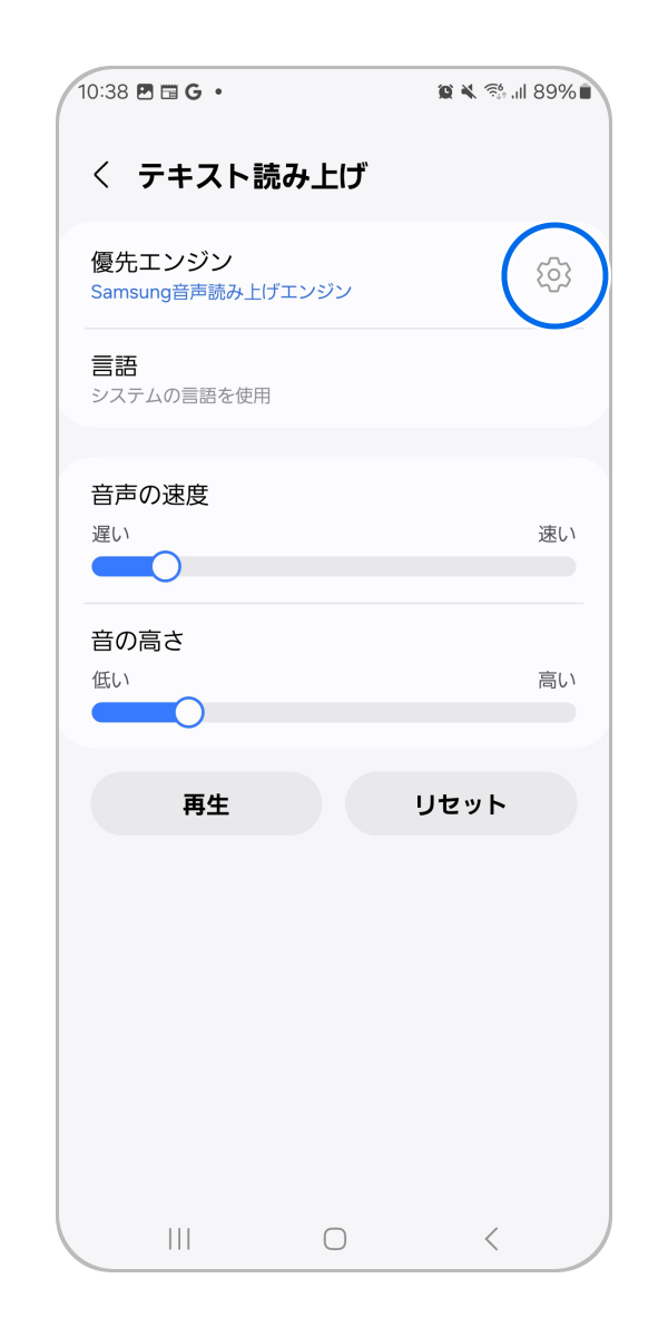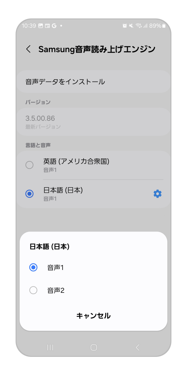 この例ではデフォルトで設定されている「Samusung 音声読み上げエンジン」を利用している場合です。