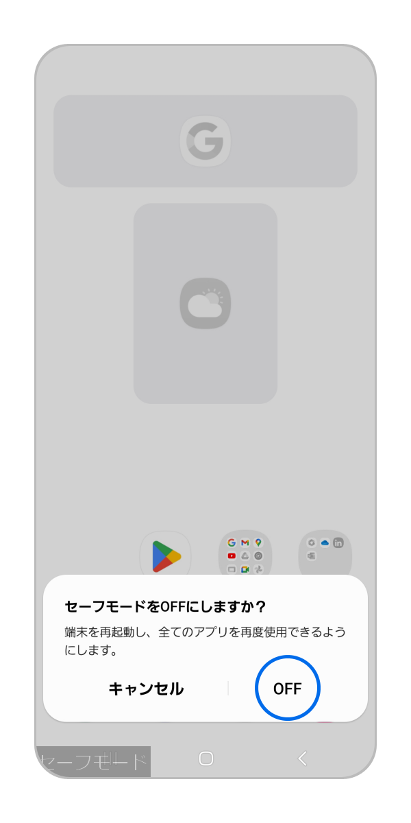 セーフモードを実行すると、アプリの並びや作成したウィジェットなどが消えてしまう可能性があります。