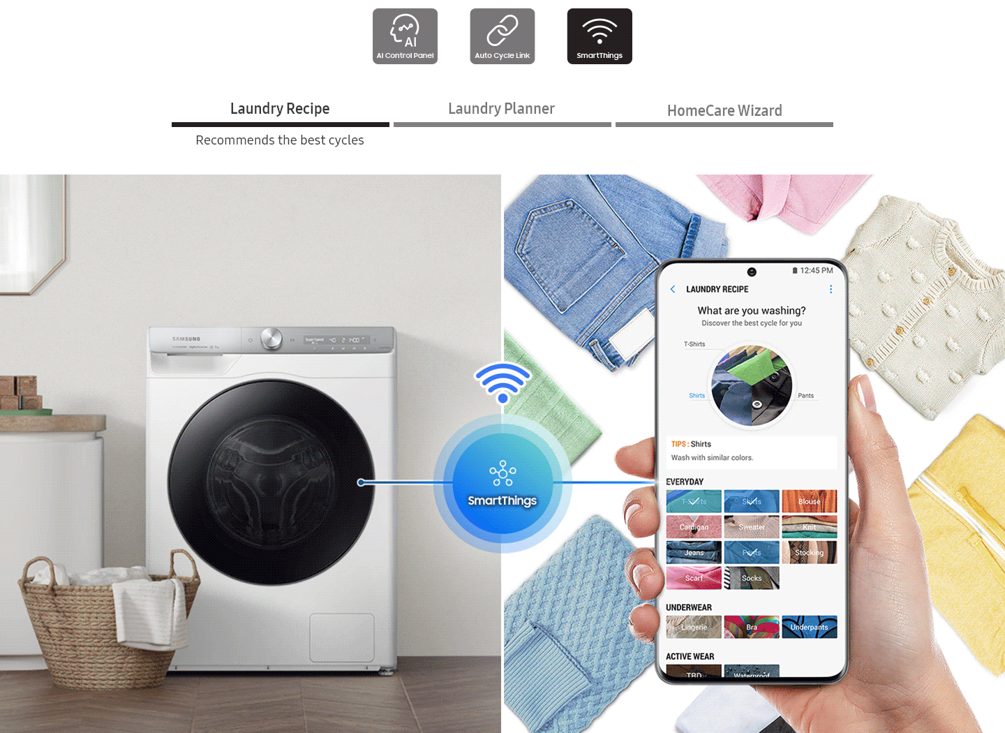 - * Серверге негізделген үлкен деректерді талдау ТМД, Қытай және сервер қолжетімді емес нарықтарда қол жетімді емес. ** Android және iOS құрылғыларында қол жетімді. Wi-Fi қосылымы және Samsung есептік жазбасы қажет.*** Auto Cycle Link функциясы кір жуғыш машина мен кептіргіште AI Control және Wi-Fi қосылған жағдайда ғана қолжетімді болады.※Берілген суреттер нақты өнімнен өзгеше болуы мүмкін.※Мобильді графикалық пайдаланушы интерфейсі суреттері ел, қоршаған орта және т.б. аспектілер бойынша әртүрлі болуы мүмкін.