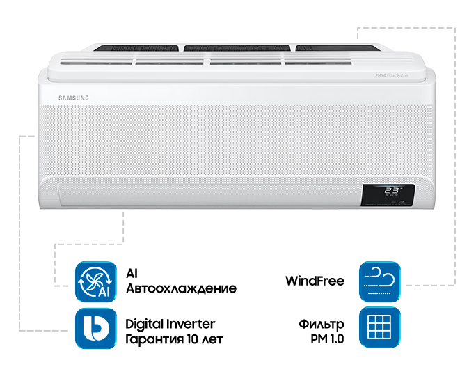 * По результатам независимого тестирования Intertek. Удаляет 99,9% Staphylococcus aureus (золотистый стафилококк) и Escherichia coli(кишечная палочка), собранных на фильтре электростатического фильтра. Результаты могут отличаться в зависимости от факторов окружающей среды и индивидуального использования. ** Удаляет 50% частиц пыли размером 0,3 мкм в помещении площадью 30 м² за 10 минут работы в час. Проверено на модели AR13TYAAAWKNST. Результаты могут отличаться в зависимости от факторов окружающей среды и индивидуального использования. *** Его можно установить только с помощью мобильного приложения. **** Состав фильтров PM 1.0 может отличаться в зависимости от региона.
