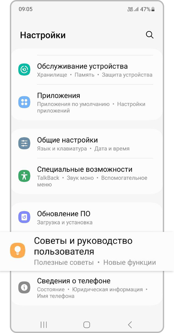 Для Samsung Galaxy руководство по использованию можно найти в меню смартфона