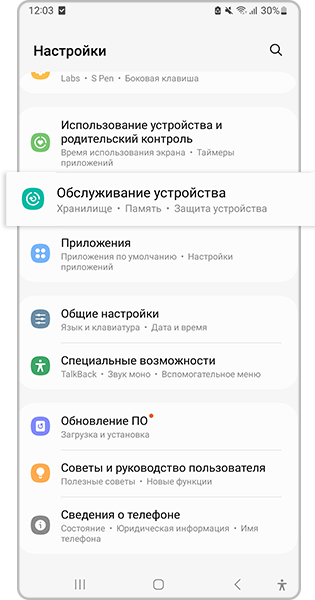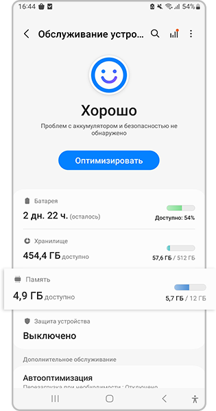Очистить оперативную память Samsung Galaxy можно без установки сторонних приложений и сервисов. Для этого воспользуйтесь функцией Обслуживание устройства.