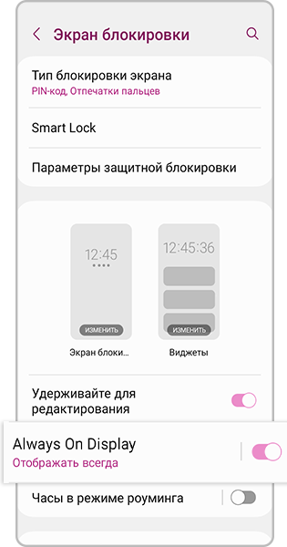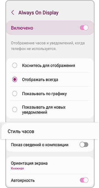 Этот тип настройки будет доступен, только если на вашем устройстве включена функция Always on Display. О том, как включить функцию, читайте в статье «Как пользоваться функцией Always On Display».