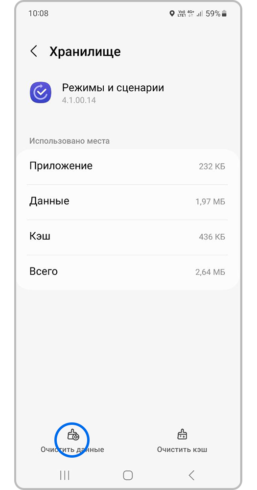 Чтобы очистить данные приложения «Режимы и сценарии» на Android 13-12, воспользуйтесь инструкцией ниже.