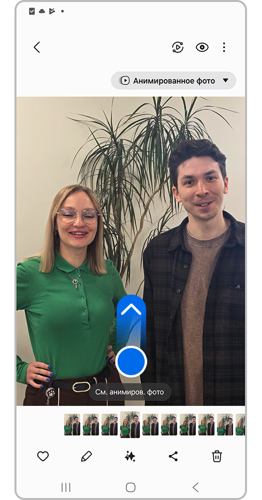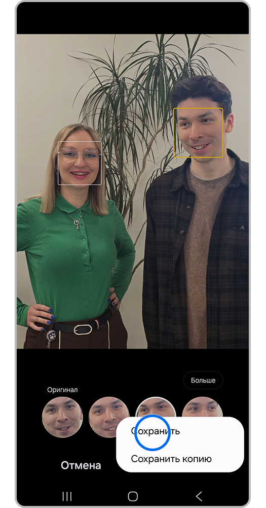 Если вы случайно сфотографировались с закрытыми глазами или странным выражением лица, устройство Samsung Galaxy предложит несколько вариатов замены из других кадров анимированного фото.
