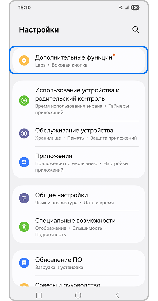 Шаг 1. Откройте Настройки и перейдите во вкладку Дополнительные функции.