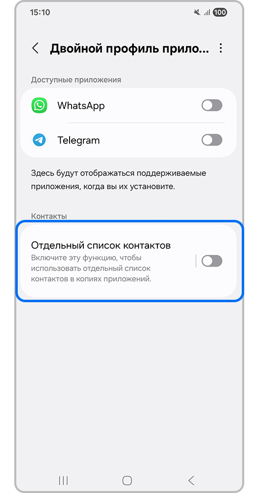 В приложении-дубликате вы можете использовать отдельный список контактов и завести не более 1000 контактов. Чтобы узнать, как их создать, смотрите инструкцию ниже: