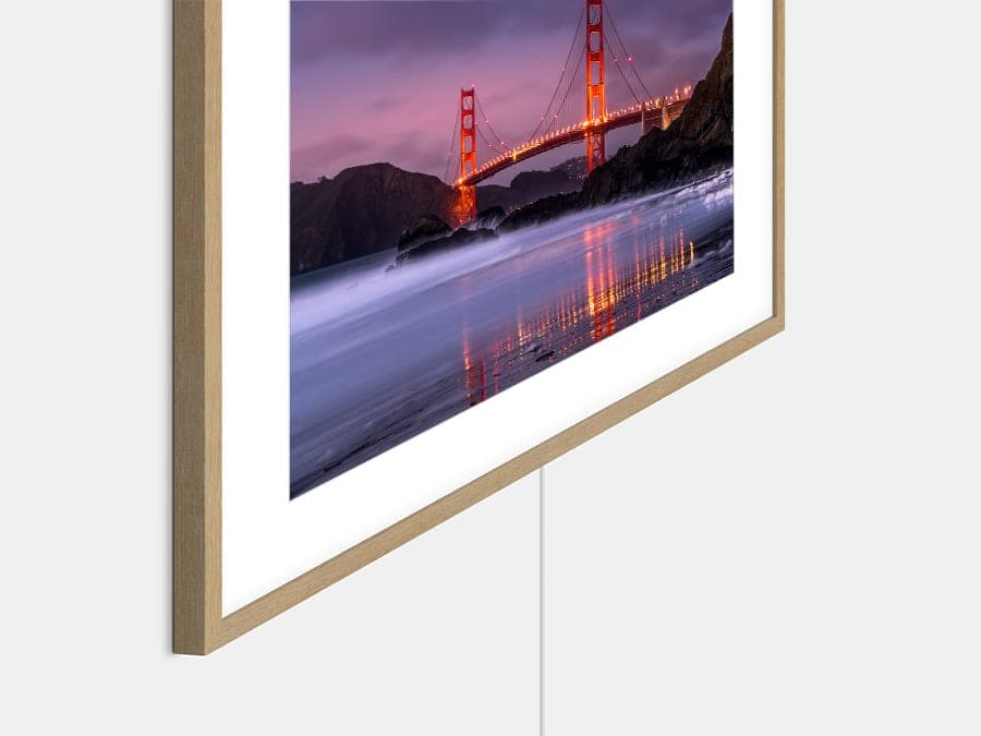 El soporte de pared Slim Wall Mount permite instalar The Frame pegada a la pared como un cuadro. En cuanto a conectividad, solo un discreto cable la conecta a la unidad externa One Connect, que alimenta la TV y la conecta a otros dispositivos. Todo esto está incluido con tu The Frame.