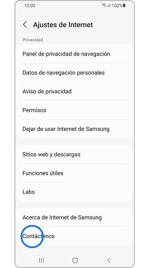 Hay muchas formas de ponerse en contacto con Samsung y la forma más fácil está al alcance de tu mano. Si deseas hacer sugerencias o solicitar cambios en la aplicación de Internet de Samsung, siempre puedes comunicarte con nosotros a través del navegador de Samsung.