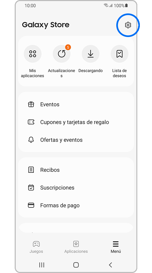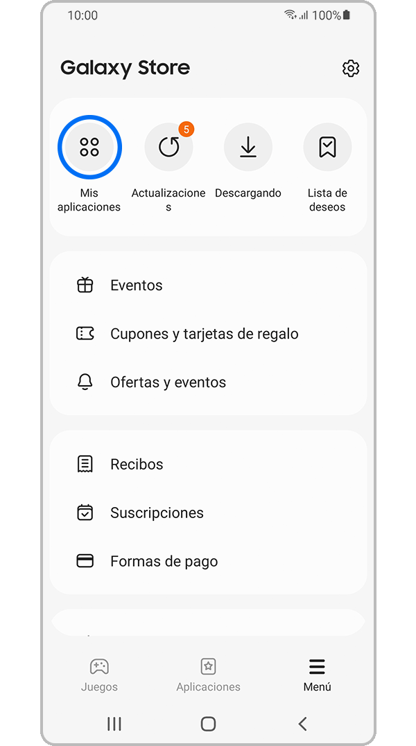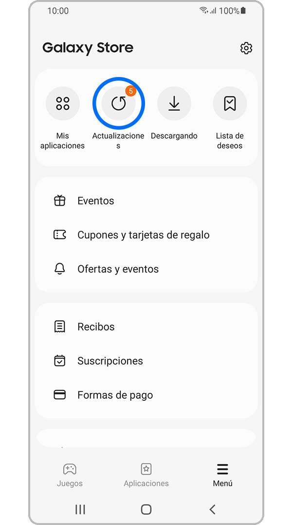 Puedes actualizar sus aplicaciones desde el menú Galaxy Store. Debes iniciar sesión en Galaxy Store para actualizar tus aplicaciones.