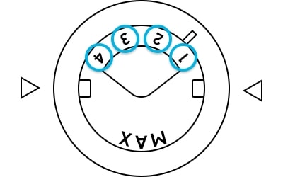 La cantidad de enjuague utilizada para el lavado se puede establecer ajustando los diales 1 a 6 en la tapa de enjuague. (Se usa más detergente a medida que avanza al 6.)