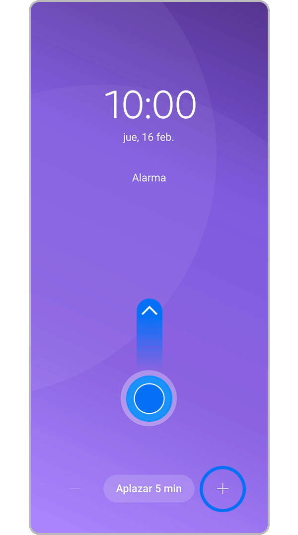 - Si el dispositivo esta bloqueado, aparecera la segunda imágen, donde podrás apagar la alarma deslizando la pantalla o aplazarla con los botones indicados.
