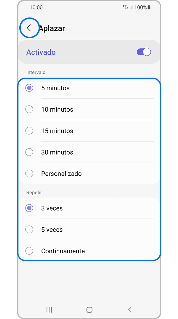 Cuando lo requieras, presiona el interruptor para activar o desactivar Posponer.
