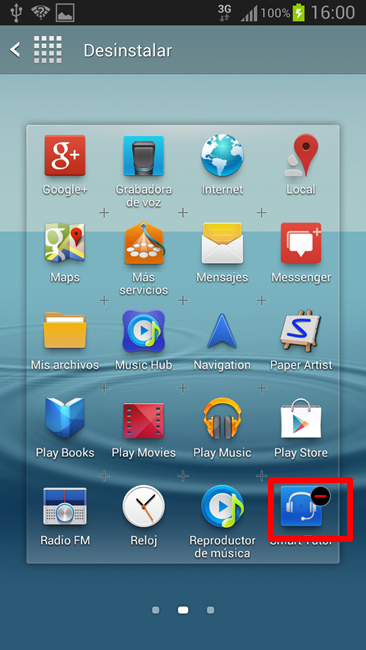 Escogemos la aplicación a desinstalar, no todas las aplicaciones se pueden desinstalar, las que vienen preinstaladas con el dispositivo, van ligadas al sistema operativo, con lo que no pueden ser desinstaladas, esto lo puede distinguir es vigilando si la aplicacion tiene un simbolo de menos de color rojo  significa que la aplicacion puede desinstalarse y no va ligado al sistema operativo, en cambio, las aplicaciones que no lo tienen no pueden desinstalarse pues son aplicaciones pre-instaladas.