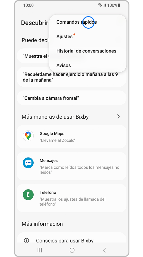 Bixby Voice te permite controlar tu teléfono y hacer comandos hablando en voz alta. Bixby Voice tiene acceso a la mayoría de tus configuraciones y puedes acceder a muchas de tus aplicaciones, lo que hace que personalizar y usar tu teléfono sea más rápido y fácil. Incluso puedes crear comandos rápidos que pueden activar una amplia gama de funciones con una sola palabra.