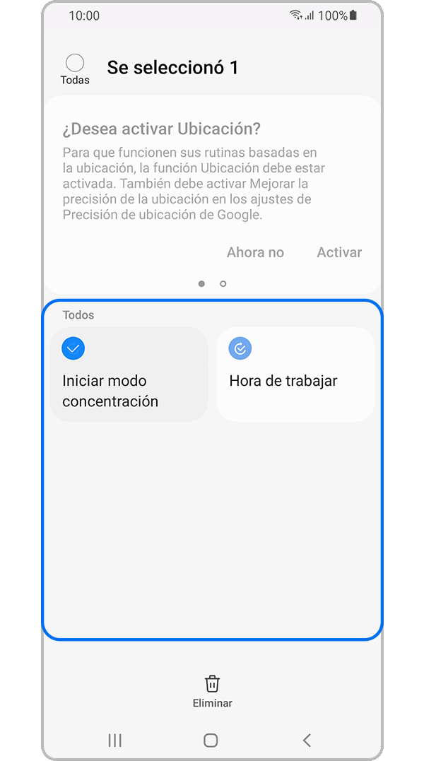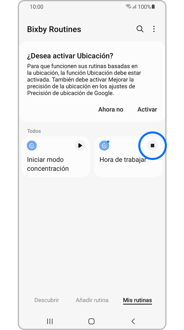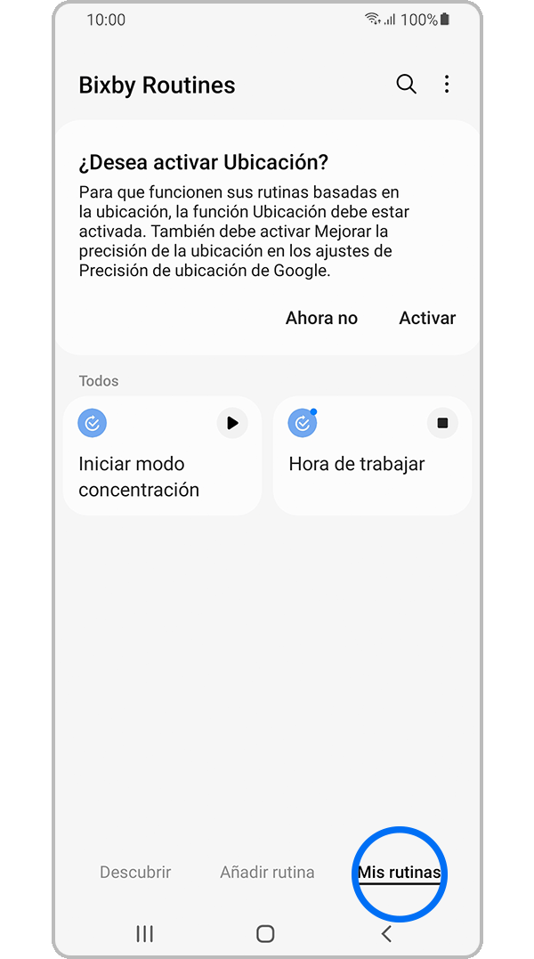 Nota: Para usar Bixby Routines, deberás iniciar sesión en tu cuenta Samsung y tener la configuración de ubicación activada.
