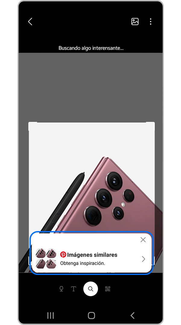Bixby Vision ahora está activo. Mueve tu cámara y enfoca diferentes objetos para interactuar con ellos. Dependiendo de lo que estés viendo, Bixby Vision puede sugerirte diferentes opciones: