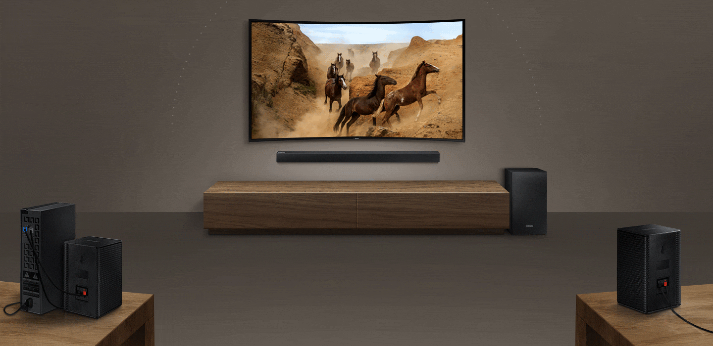 Connect the Soundbar to your Samsung TV* with ease and without the clutter of wires via Bluetooth or Wi-Fi. You'll be able to enjoy all your content instantly with clearer, more impactful sound.