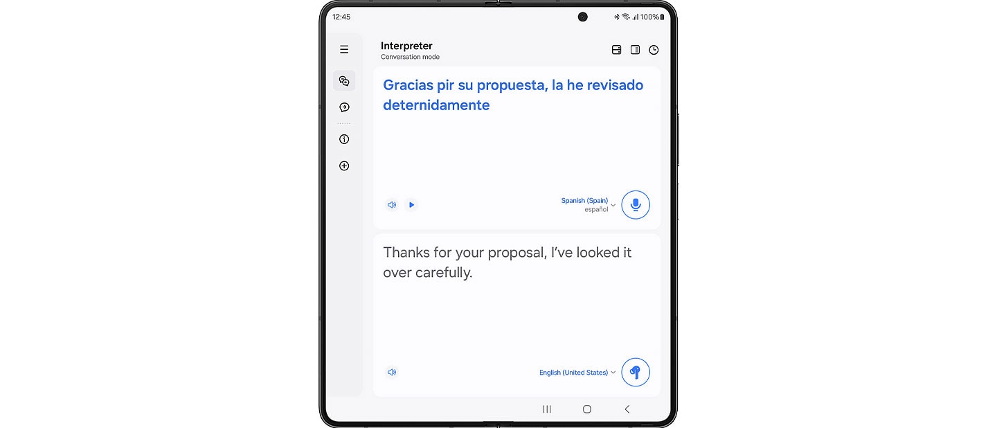 In conversation mode, place the phone mic toward the speaker, short press your Galaxy Buds3 Pro and listen to your conversation translated in real-time.