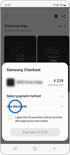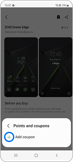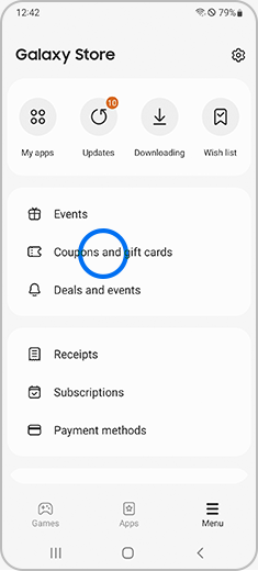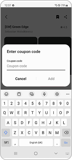 You must have a Samsung account in order to register and use coupons from Galaxy Store events or external promotions. After coupons are registered in your Samsung account, they can be used on paid app and in-app item purchases.