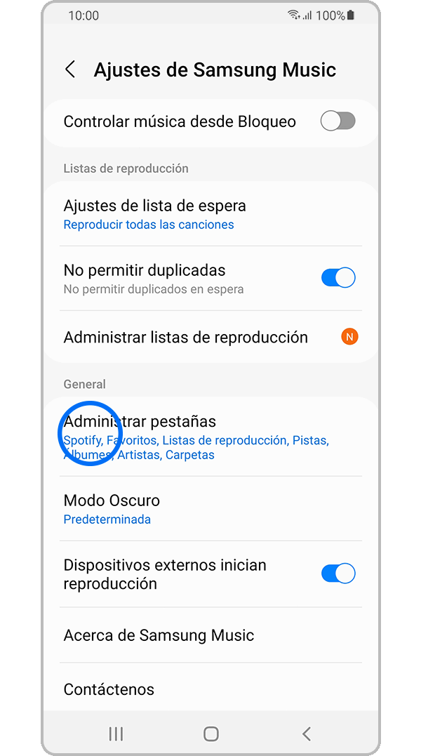 Nota: no puedes eliminar las pestañas Favoritos, Listas de reproducción y Pistas.