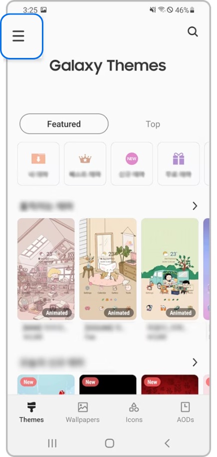 Step 1. Tap Menu (the three horizontal lines) in Galaxy themes.