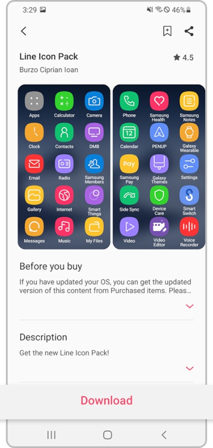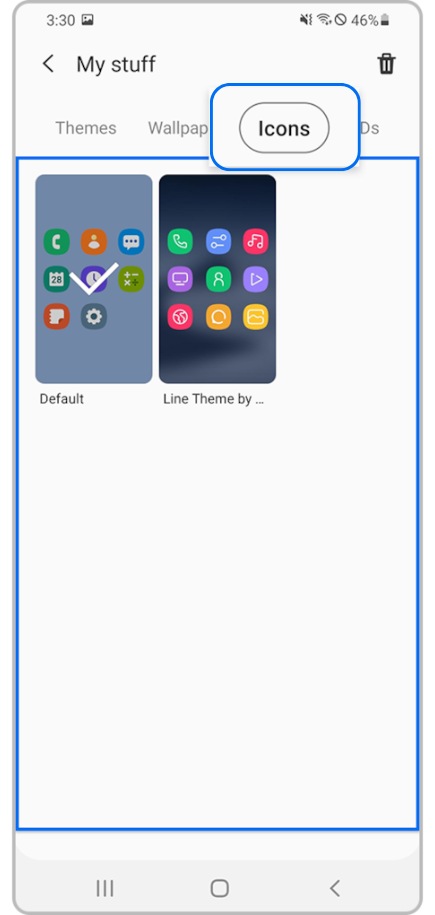 There is also a way to change just the icons rather than changing the entire theme. Follow the steps below to download and change icon styles on Galaxy Themes.