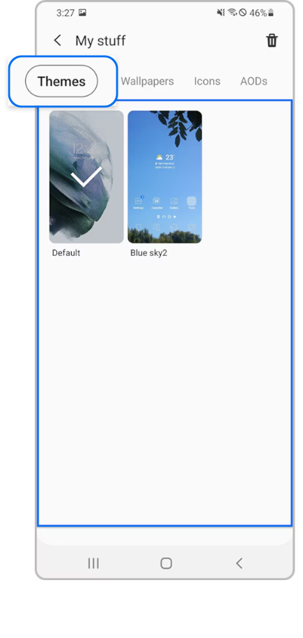 Step 3. Tap Delete (the trash icon) in the upper right corner and select the themes or icons you'd like to remove.