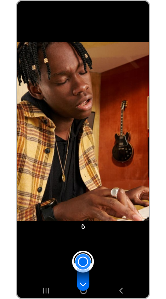 Step 2. Swipe down on the Shutter button and release the Shutter button when you want the burst shot to end.
