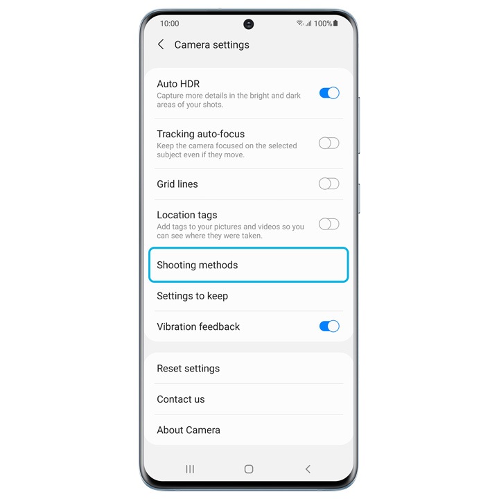 How to take photos showing the palm of your hand, with your Samsung Galaxy phone?