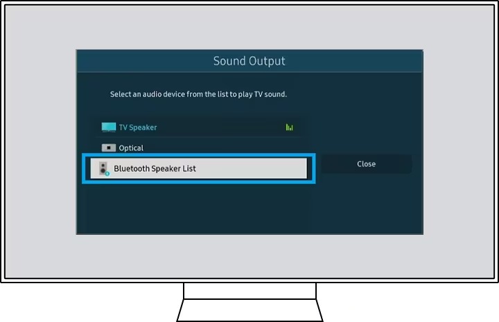 (TV Home menu > Settings > Sound > Sound Output > Bluetooth Speaker List)