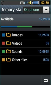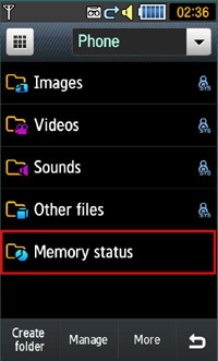User can check the size of the memory from ‘Memory status’ in ‘My files’ menu or ‘Memory settings’.