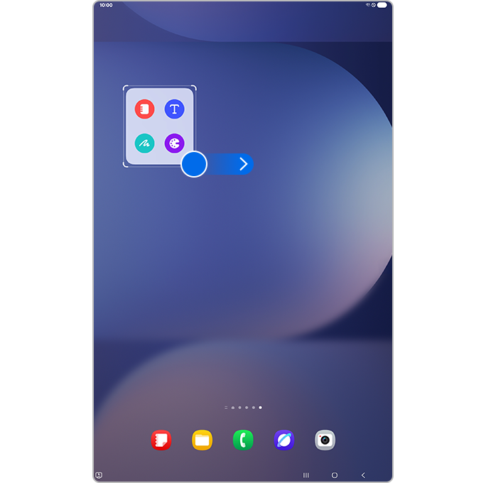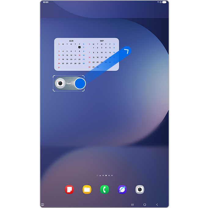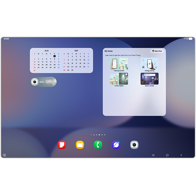 The Home screen on your Galaxy tablet is where apps, widgets, and shortcuts are organised. It uses a grid layout to determine how many items fit per row and column.