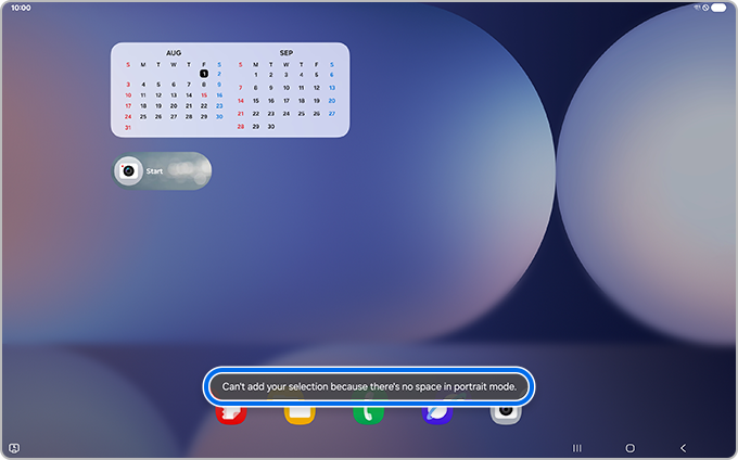 - To add an app or widget successfully, ensure that both landscape and portrait Home screens have enough available space. For example, a widget may not be added in landscape mode if the portrait layout lacks the required space.